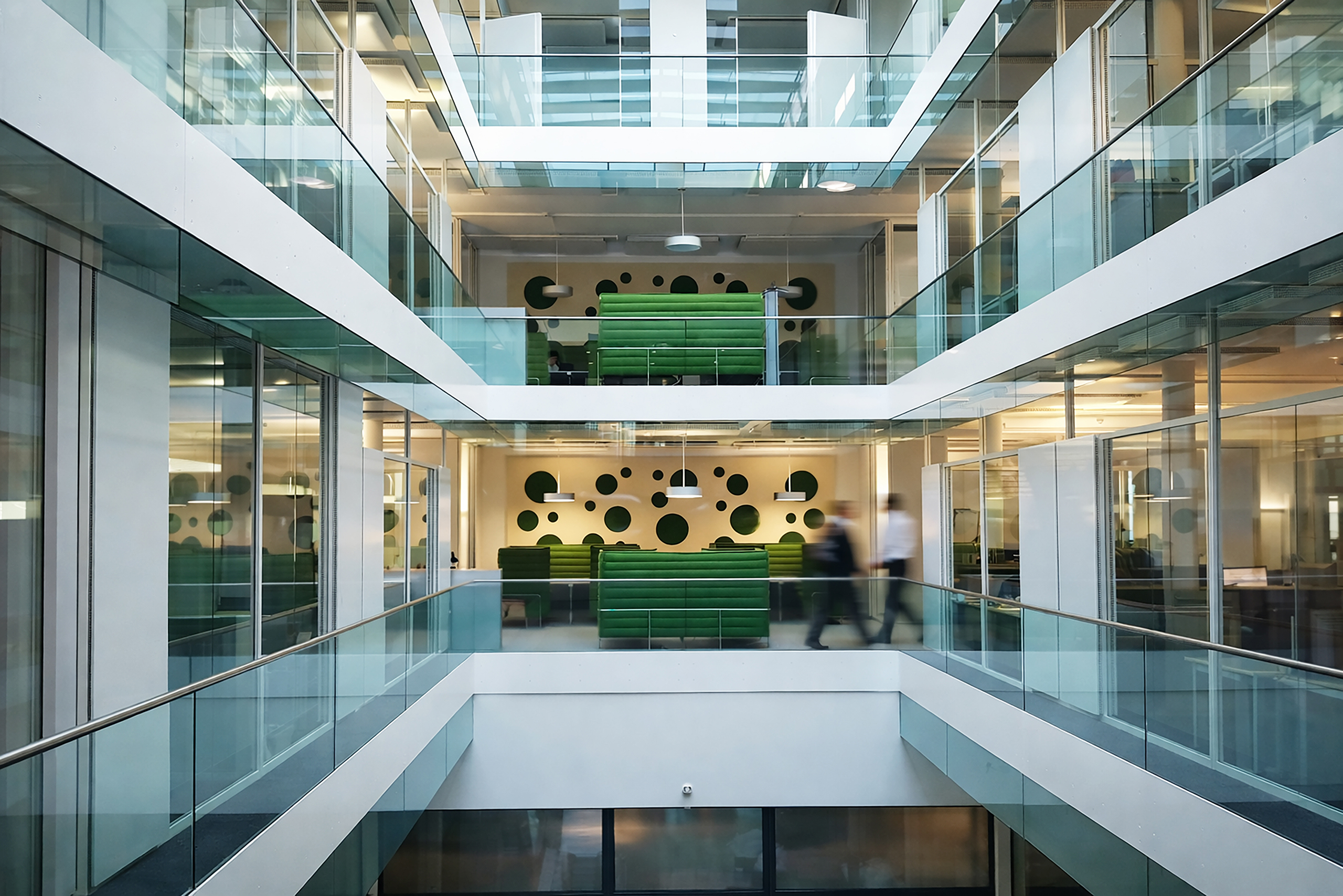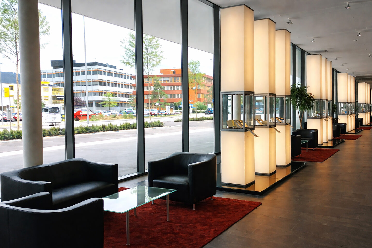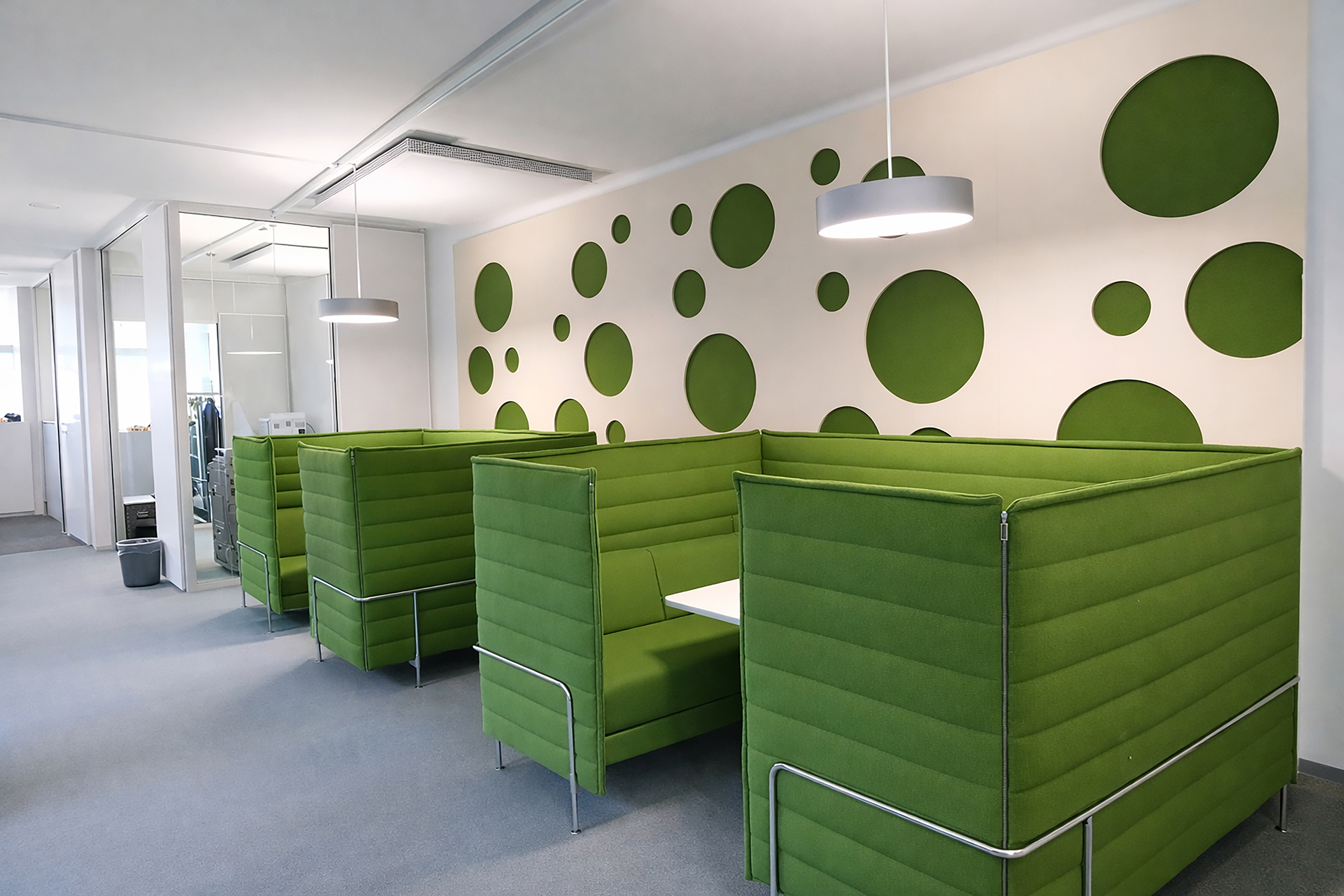 20 Thinktanks, 19 Serviceinseln, Cafeteria, 4 Coffeepoints, Productworld und Empfangszone inkl. grosszügier Loungezone geschaffen.